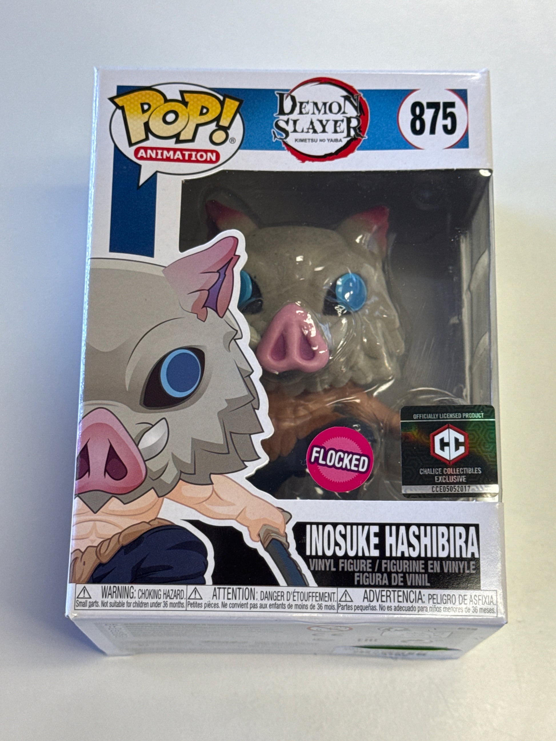 FUNKO POP ANIMATION DEMON SLAYER INOSIKE HASHIBIRA FLOCKED CHALISE COLLECTIBLES EXCLUSIVE 875 GOOD CONDITION IN BOX