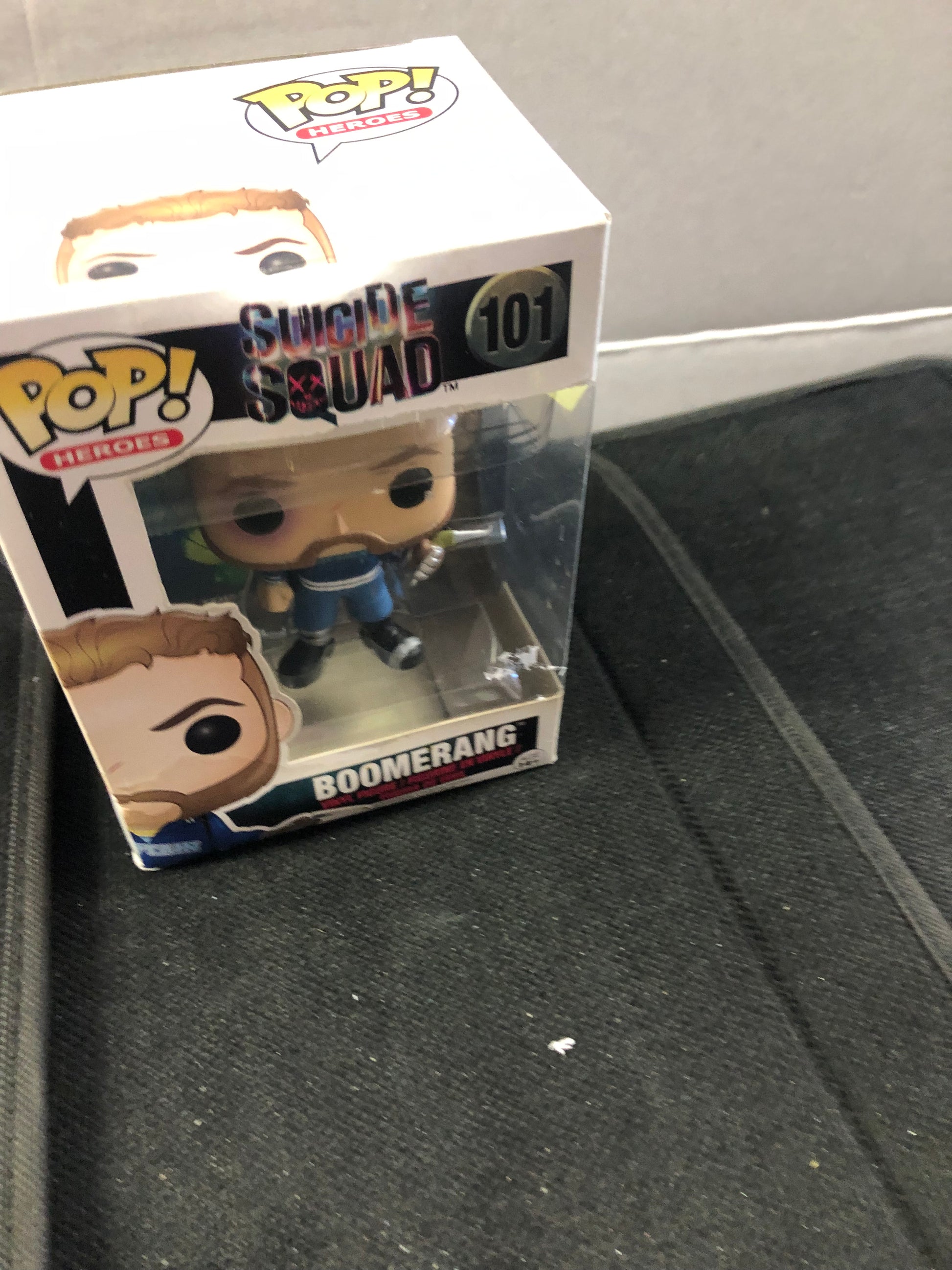FUNKO POP POP HEROES SUICIDE SQUAD #101 BOOMERANG POOR CONDITION BOX HAS MULTIPLE STAINS AND TEARS