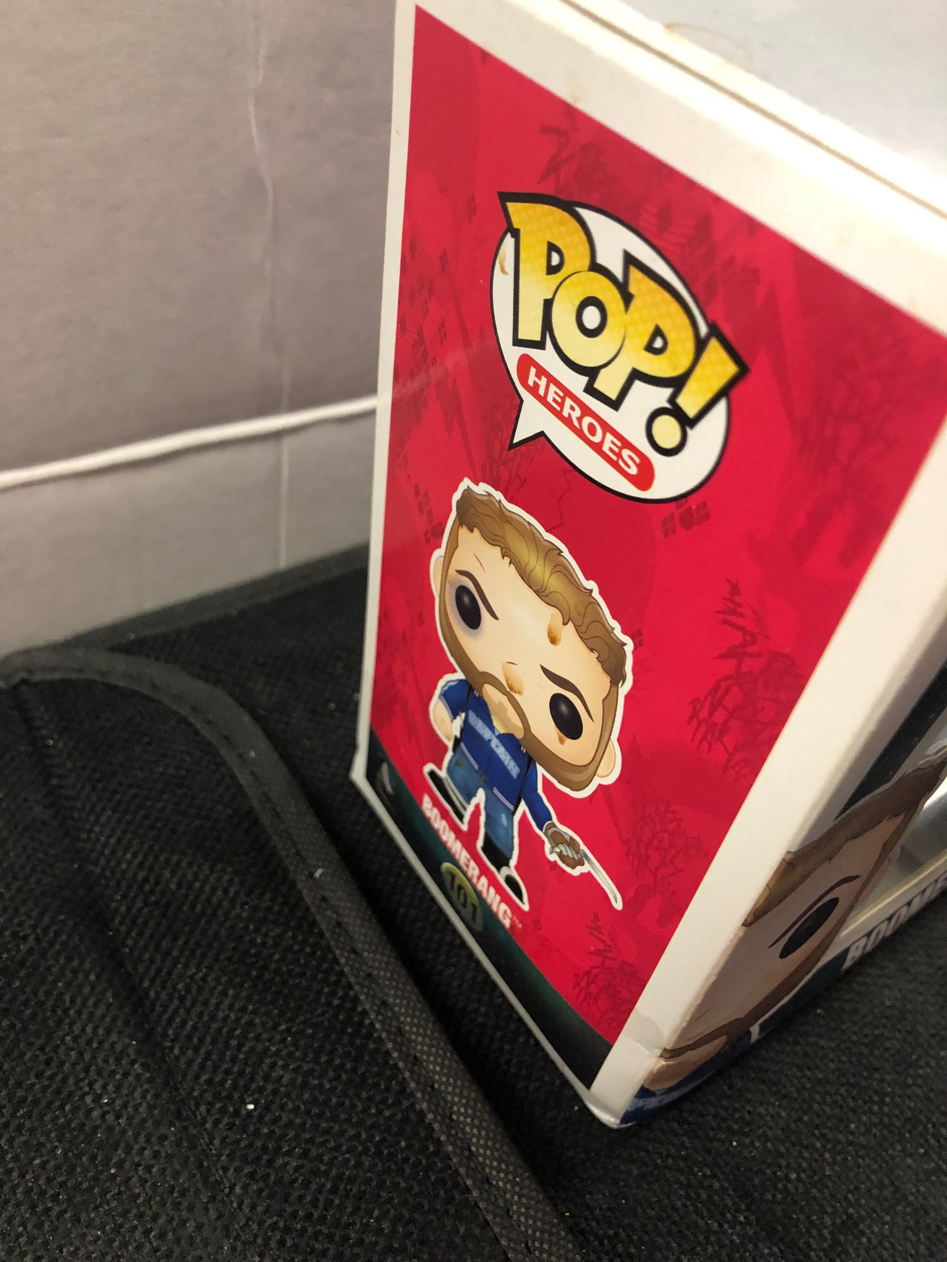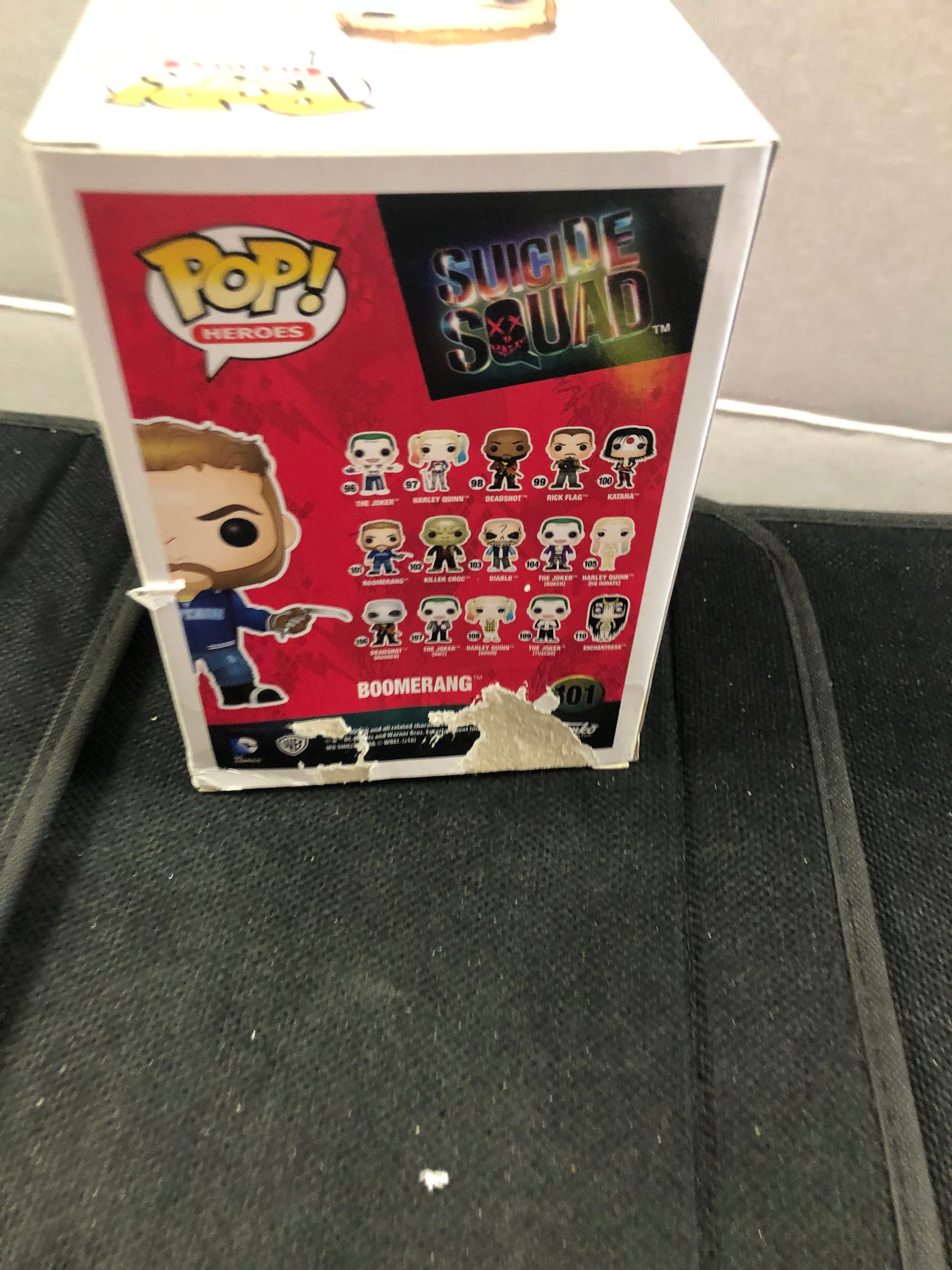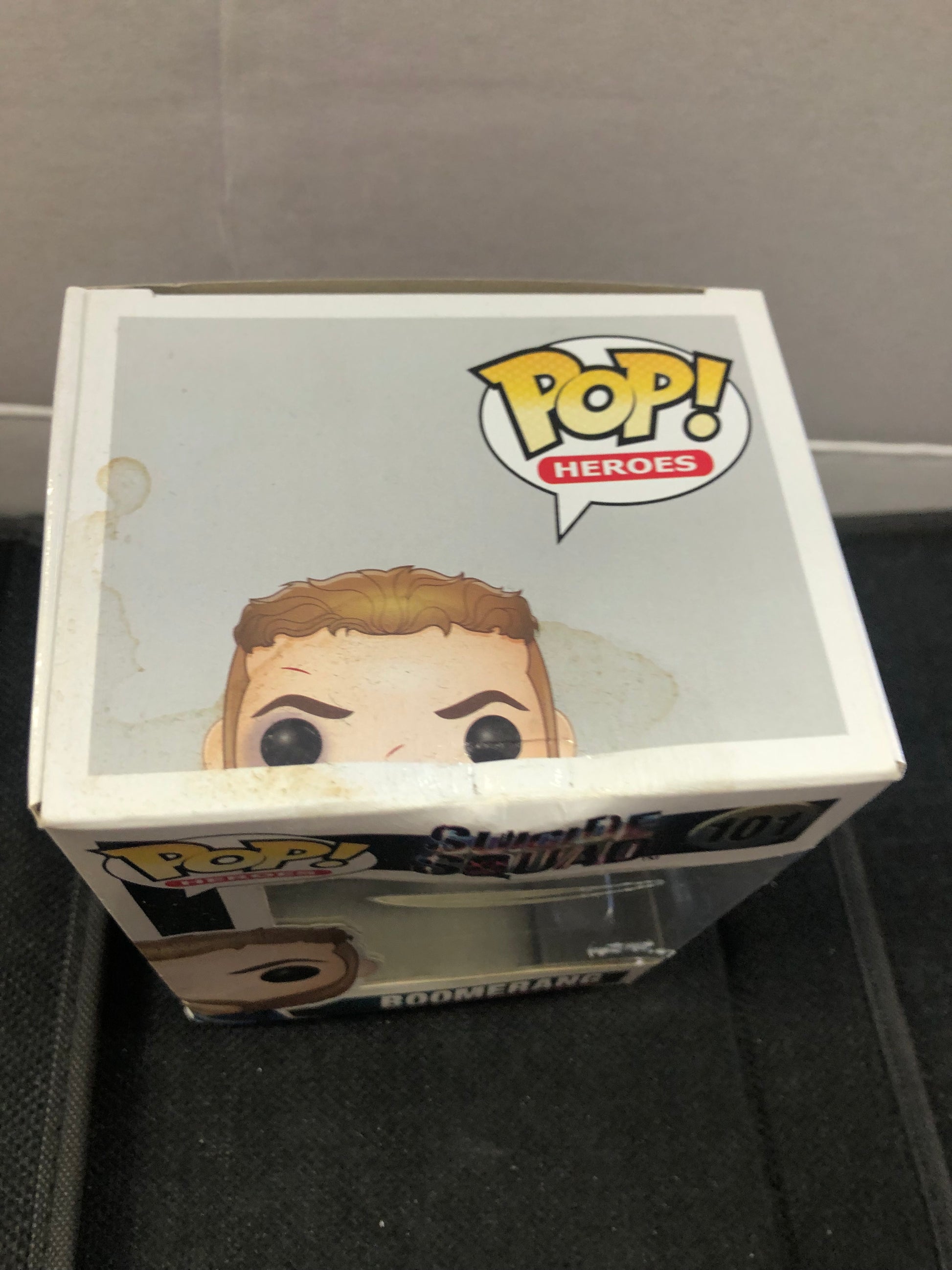 FUNKO POP HEROES SUICIDE SQUAD #101 BOOMERANG POOR CONDITION BOX HAS MULTIPLE STAINS AND TEARS