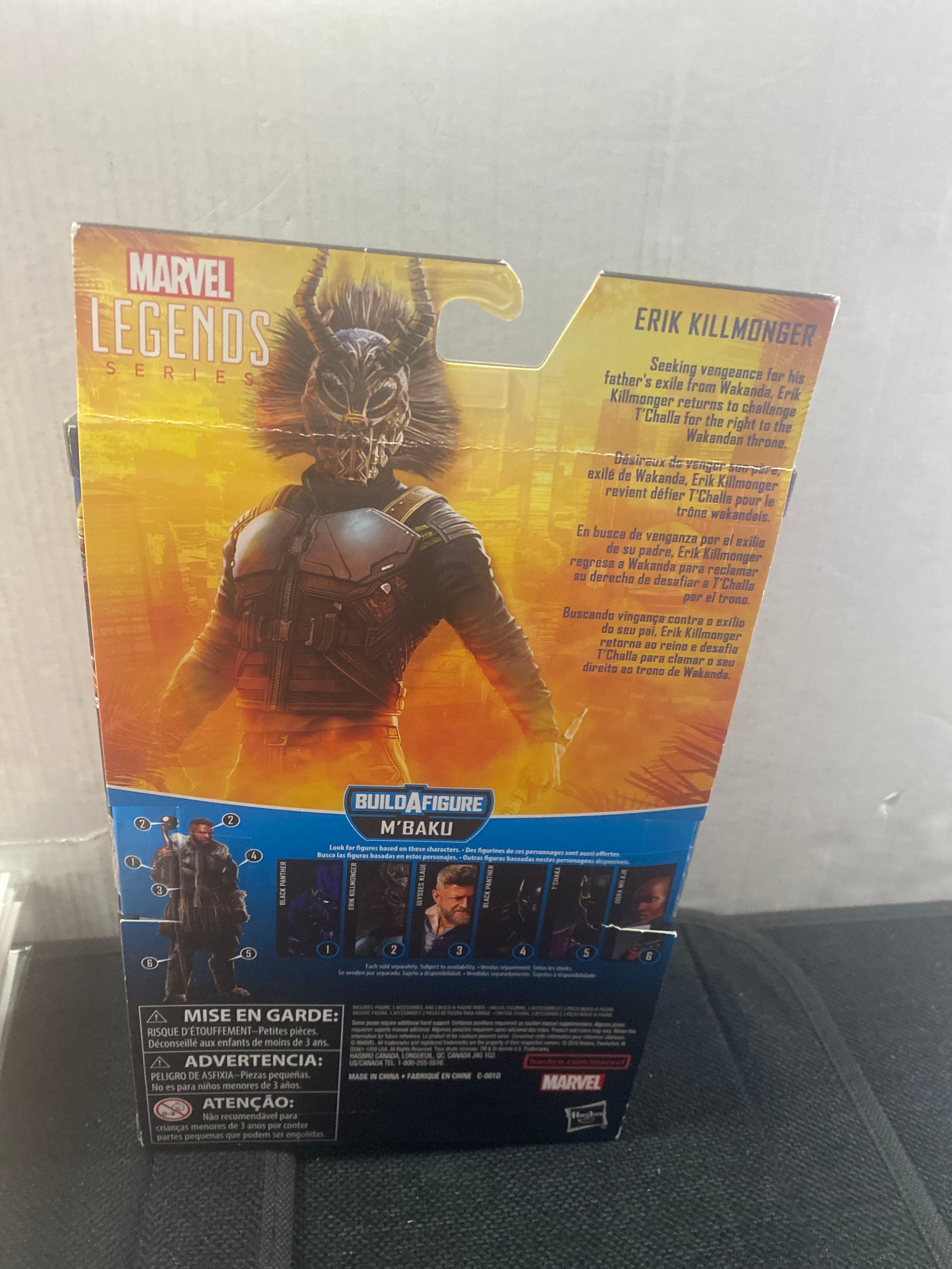 MARVEL LEGENDS SERIES BLACK PANTHER ERIK KILLMONGER MBAKU BUILD A FIGURE OKAY CONDITION PLASTIC LOOSE ON FRONT OF BOX