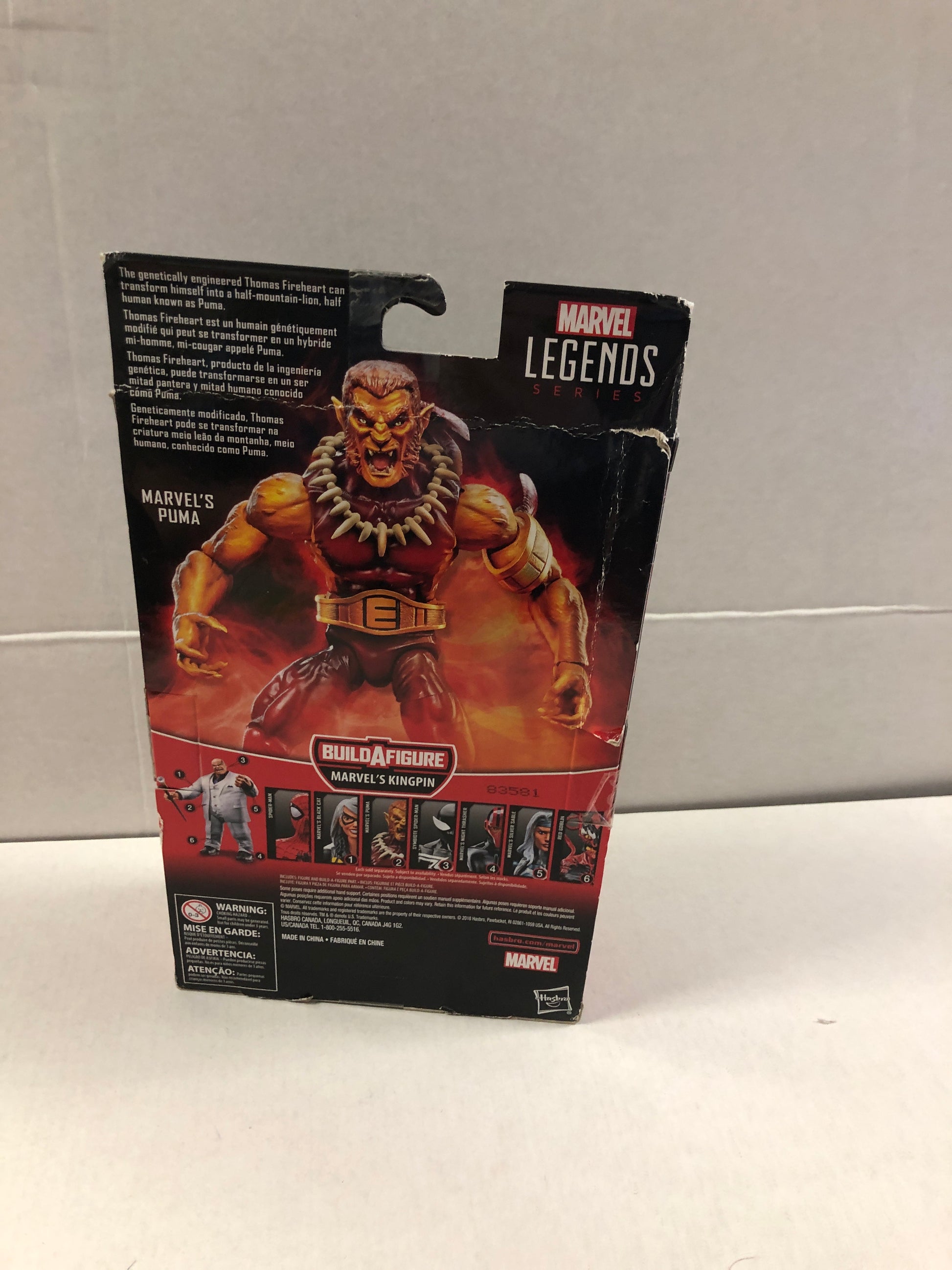 MARVEL LEGENDS SERIES SPIDER-MAN MARVELS PUMA OKAY CONDITION BOX DAMAGE ON BACK OF BOX