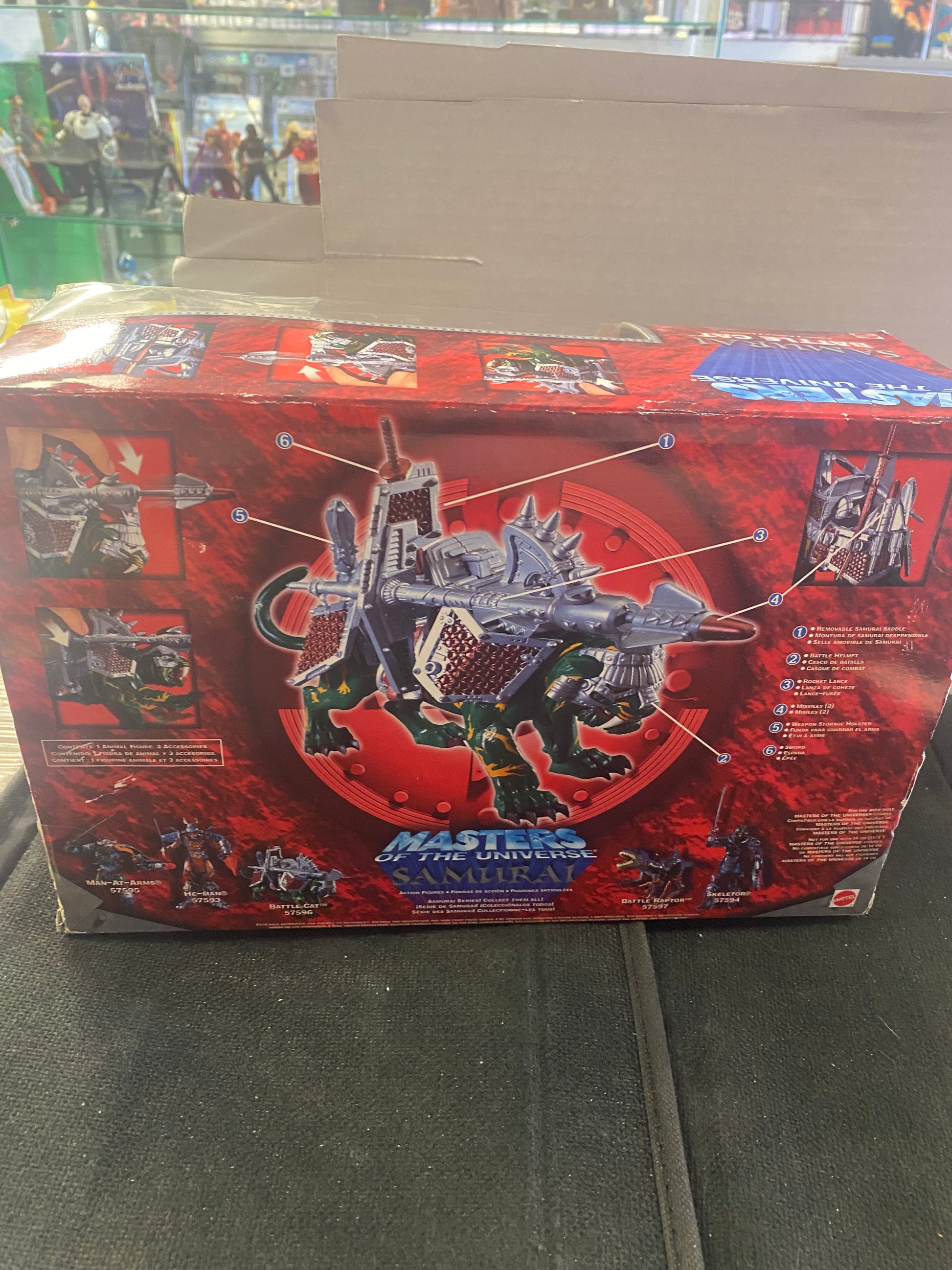 MATTEL MASTERS OF THE UNIVERSE SAMURAI BATTLE CAT (2002) OKAY CONDITION PLASTIC ON FRONT BOX TORN OPEN