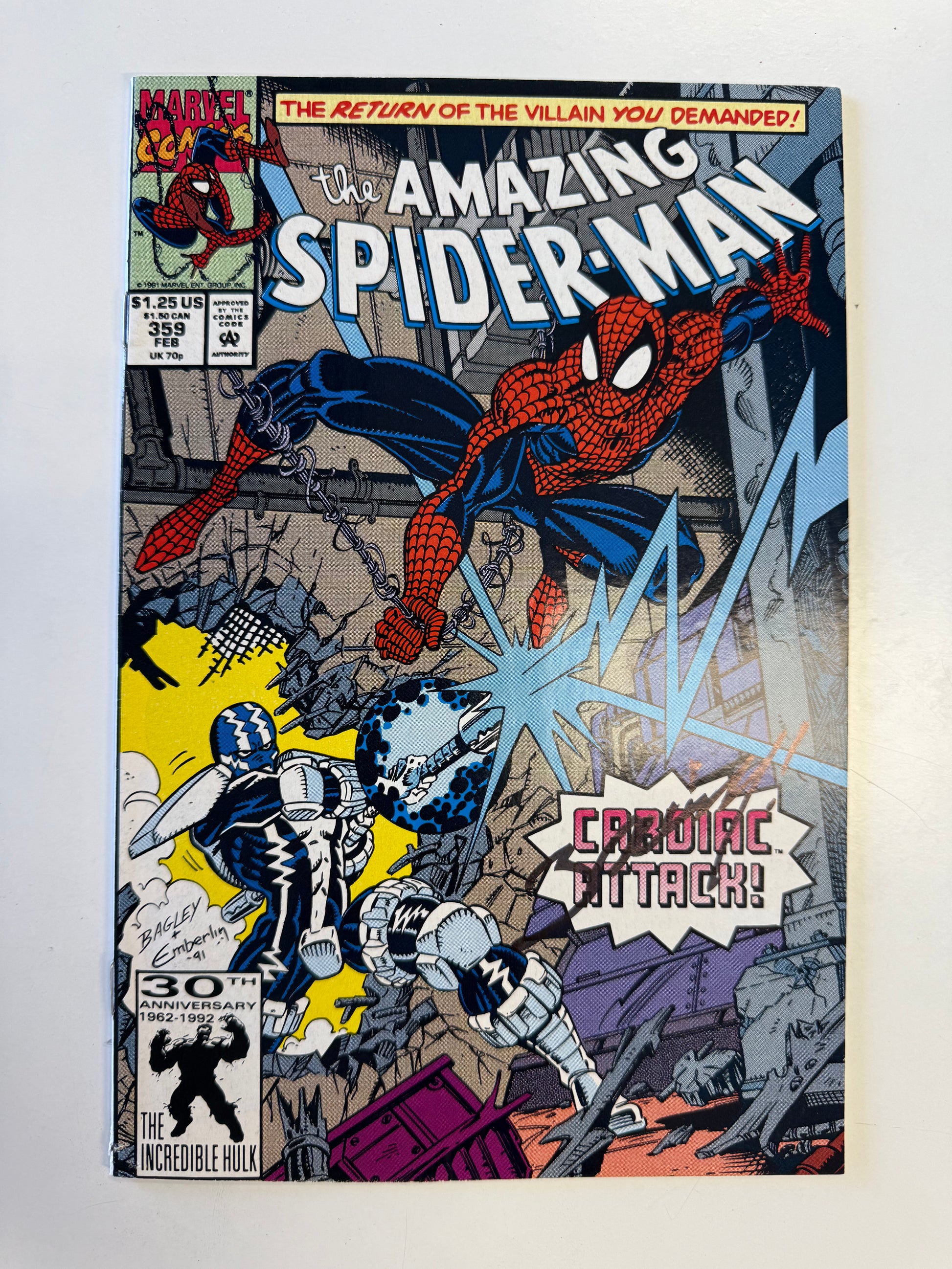 THE AMAZING SPIDER-MAN #359 (1992 VF-) CARNAGE signed BAGLEY